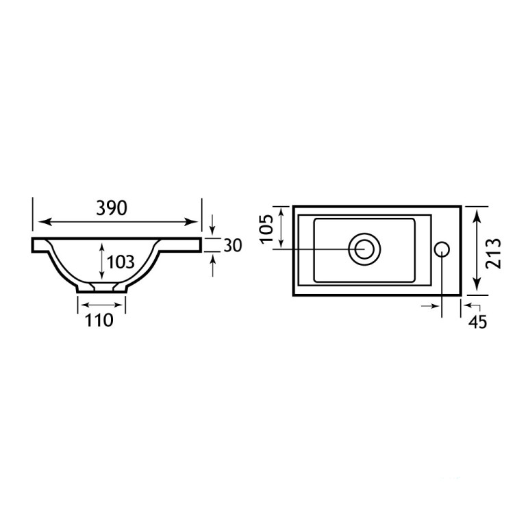 Basin only – unit and tap are not included.