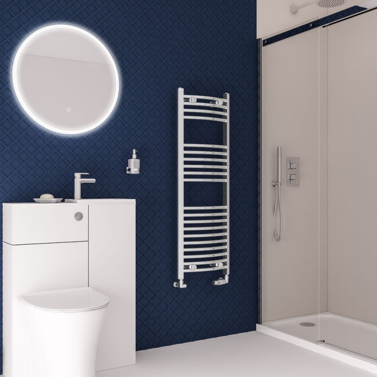 A high quality contemporary range available in a curved design and different surface finishes. Robe hook accessories can be used with this towel rail as well. This range is the ultimate in simplicity of style and practicality for your bathroom, keeping your towels warm.