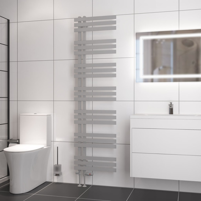 A modern, versatile designer towel rail. Available in 6 colours with reversible installation possibility.
