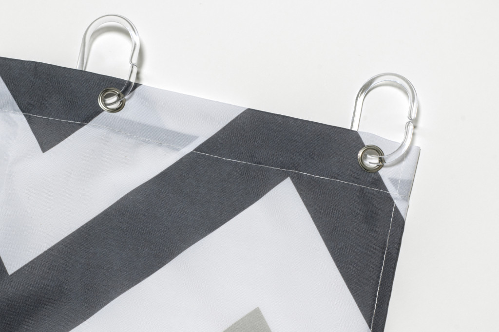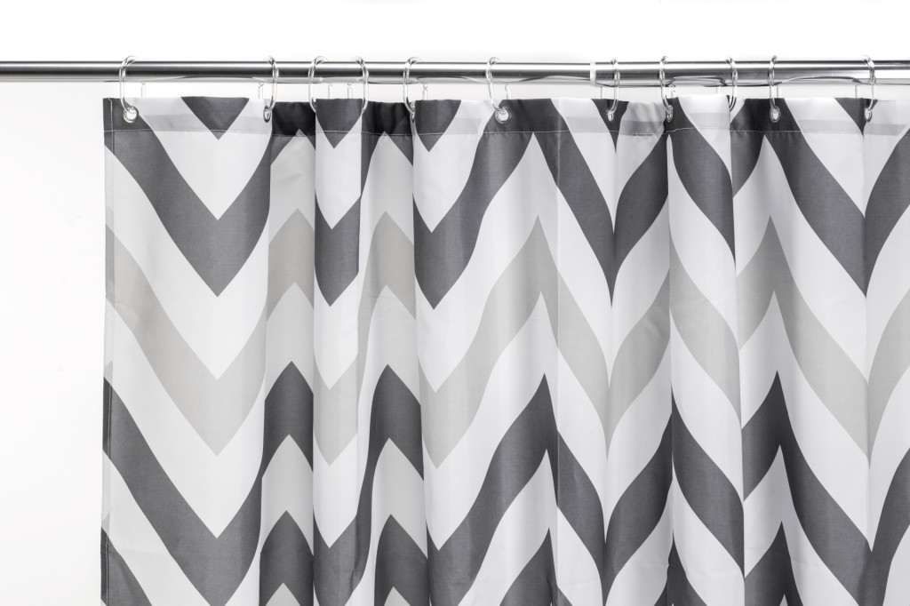 With a white, charcoal and grey chevron finish, this curtain is sure to spice up any bathroom.- ProsealĀ® coated fabric gives excellent water repellency