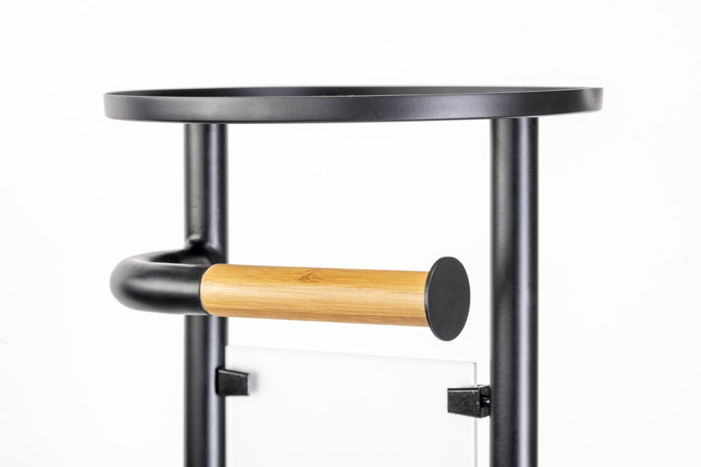 The stylish design is sure to sit beautifully in any bathroom.- Matt black powder coated mild steel multifunction butler