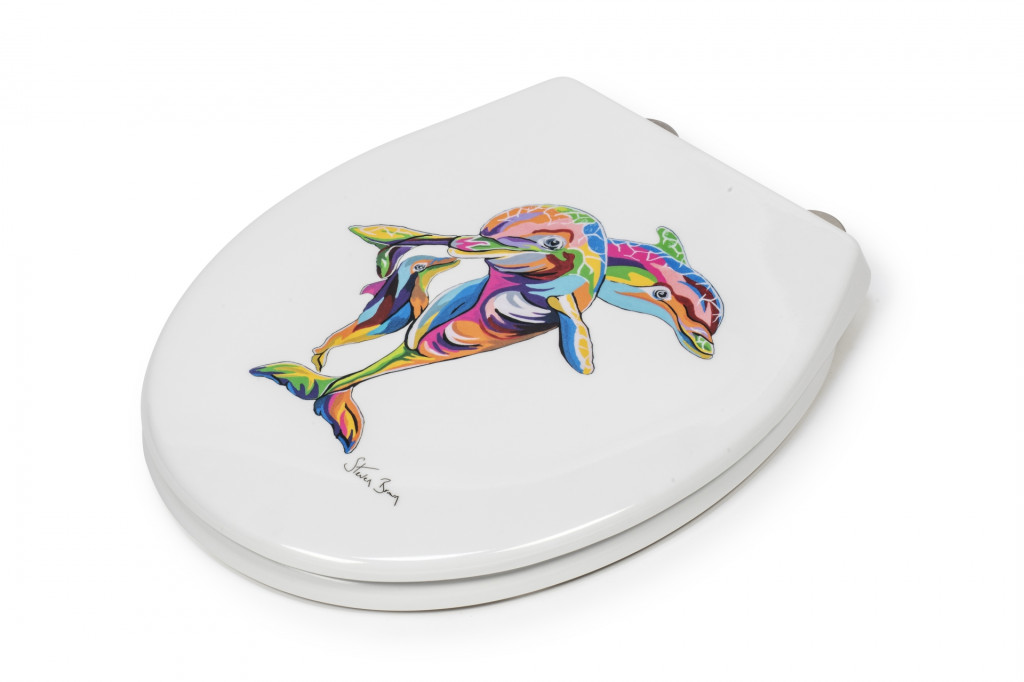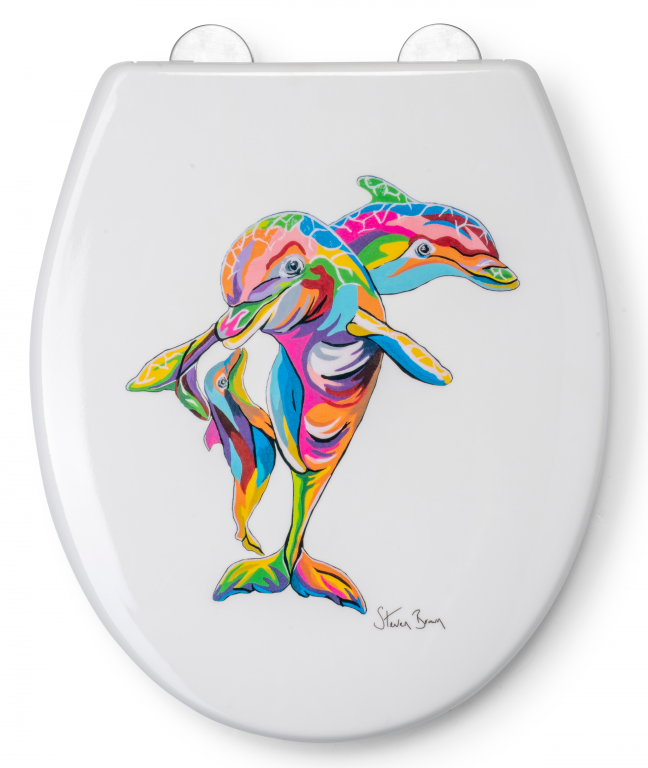Enjoy a morning zoo with this vibrant toilet seat featuring original artwork from celebrated artist Steven Brown.