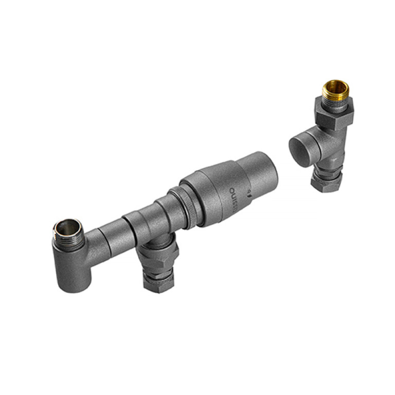 Hugo Dual Fuel Valves - Floor Plumbing Connection with Thermostatic Head - Anthracite