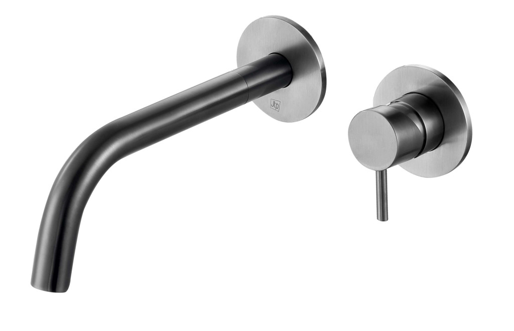 Vos Single Lever Wall Mounted Basin Mixer 150mm Spout - Brushed Black