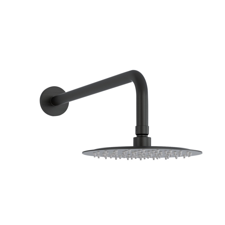 200mm stainless steel round slimline showerhead and design brass shower arm in Matt Black