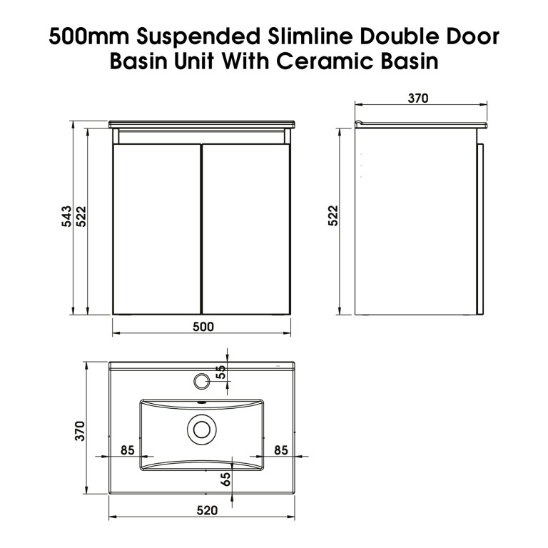 Newland 500mm Slimline Double Door Suspended Basin Unit Including Ceramic Basin -...