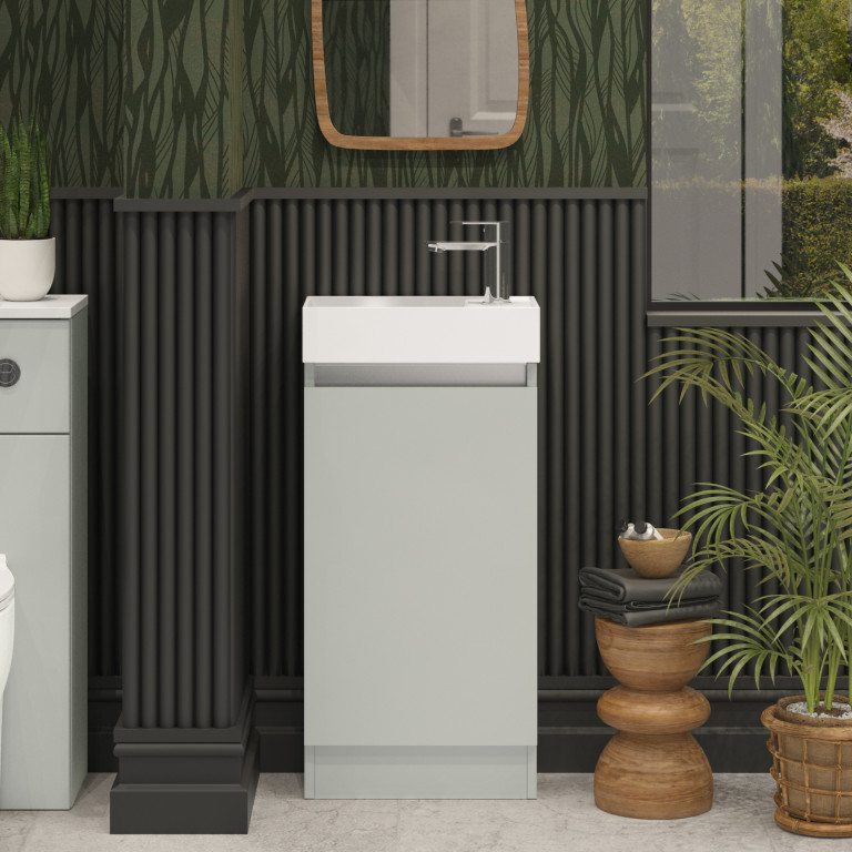 Newland 400mm Single Door Freestanding Cloakroom Basin Unit Including Ceramic Basin -...