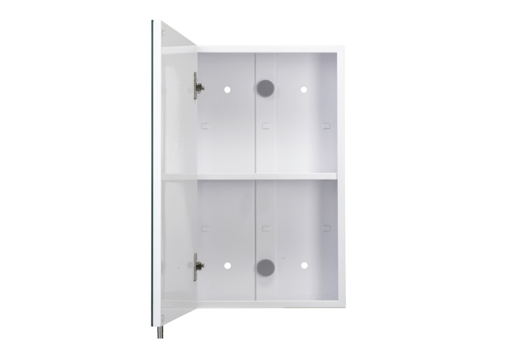 Supplied fully assembled, it is also easy incredibly easy to install.- White steel cabinet with mirrored door