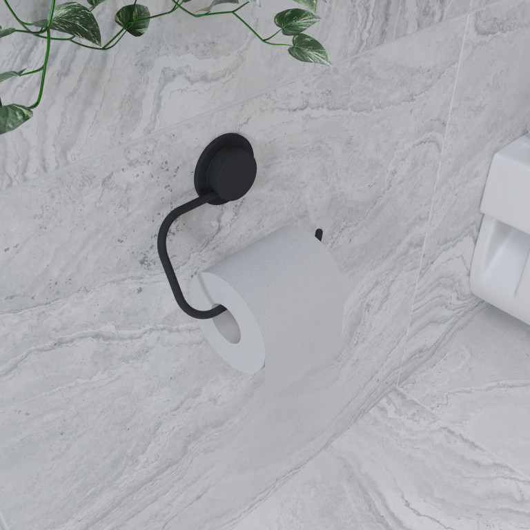 With a matt black finish and streamlined design, this contemporary toilet roll holder sits beautifully in any bathroom.
