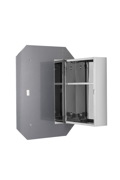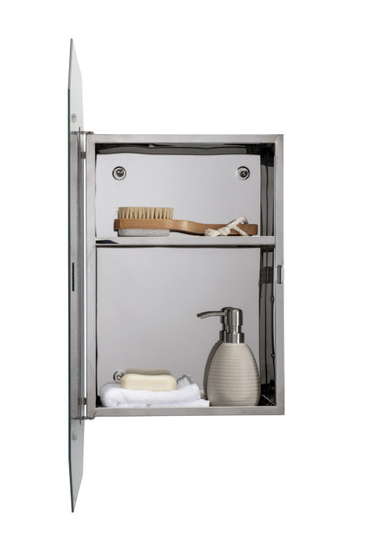 Extremely easy to fit, the cabinet is supplied fully assembled.- High quality polished stainless steel cabinet with mirrored door