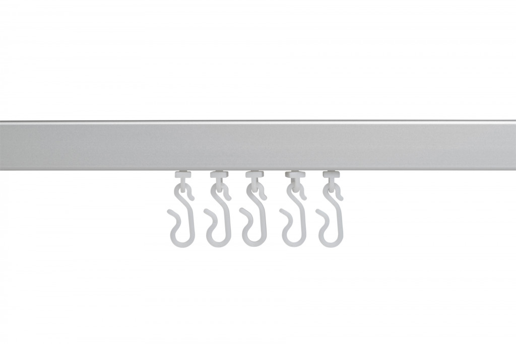 - Supplied with twelve hooks and gliders for one shower curtain