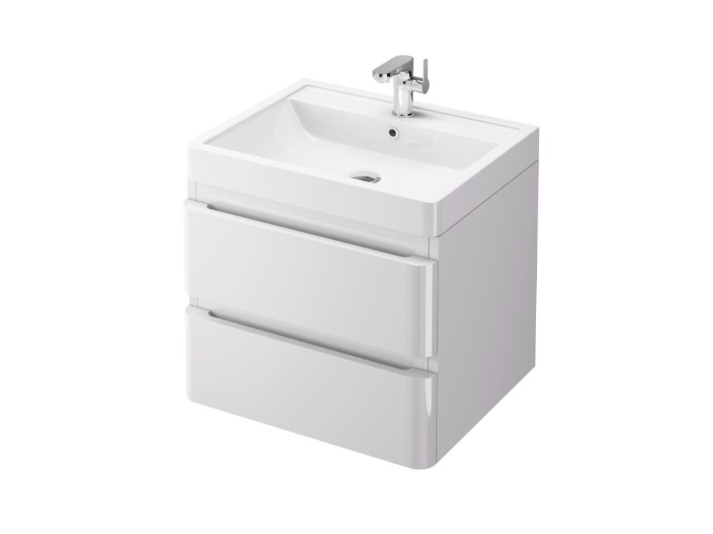 Flite 600x480mm Two Drawer Wall Mounted Basin Unit in White Gloss