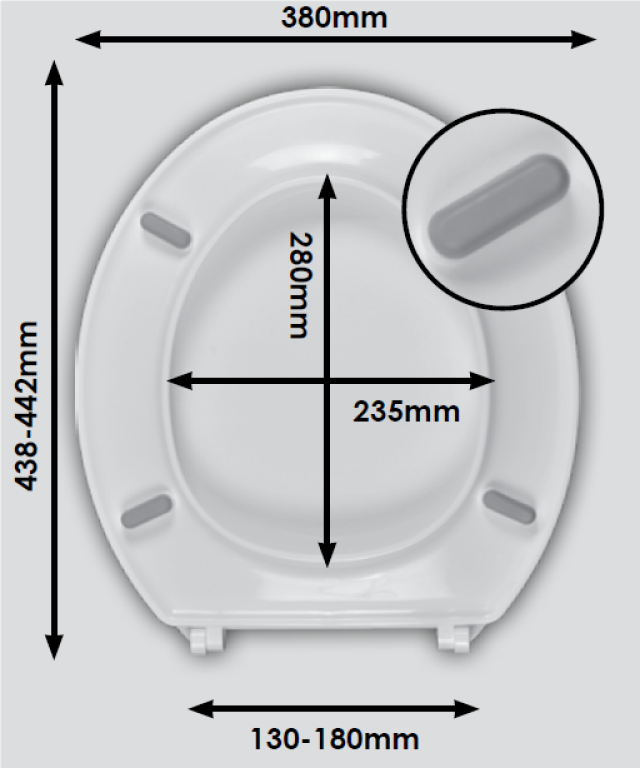 Wirquin Flamenco Thermoplastic toilet seat, top fix stainless steel hinge includes Lock+ to prevent seat movement 1.4kg