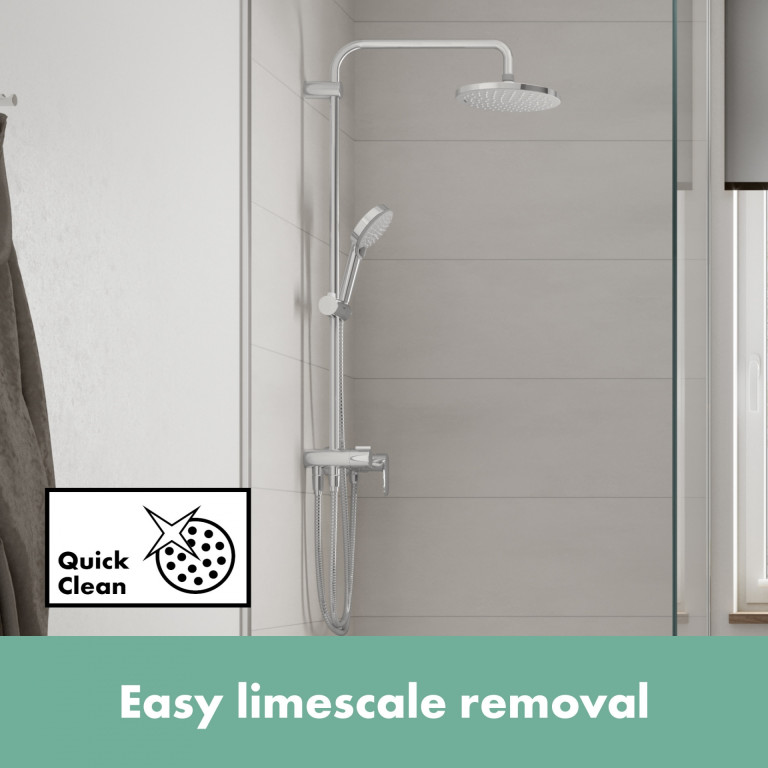 - Easy care: Limescale can be removed by simply wiping the silicone nozzles on the shower head (QuickClean)