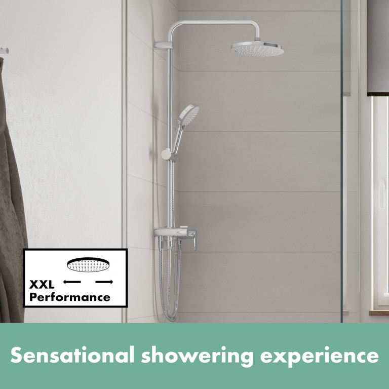 - Indulgent showering: The 205 mm overhead shower pampers with an even, luxurious water flow (XXL Performance)