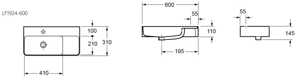 Blade 600x310mm Basin One Tap Hole