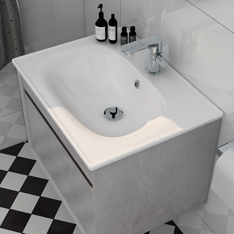 Alma 600mm Single Drawer Cabinet in Natural Stone
