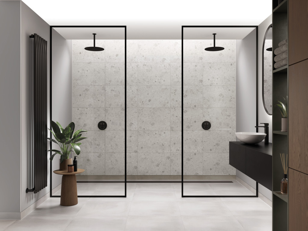 This stylish and on trend Terrazzo has a white base with pale grey variations. It works well on its own or paired with Dove grey from our Neutrals collection for a fresh, luxurious finish. This décor works beautifully paired will walnut furniture and black accessories.