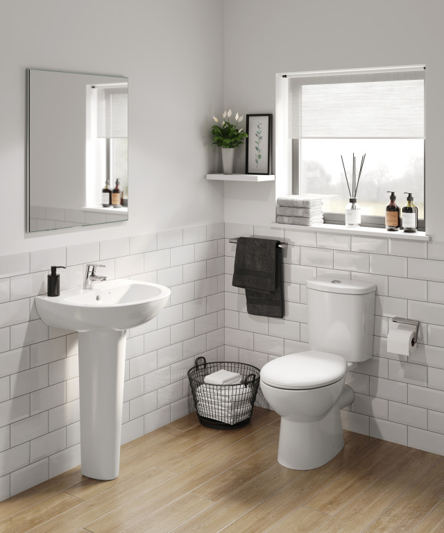 - The wall hung basin is convenient for bathrooms with limited floor space.