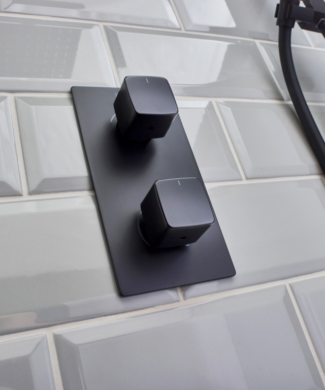 - This shower pack has soft square handles on our Black Colbalt shower valve with integral two outlet diverter. It has a 200mm slimline square fixed head with shower arm; and shower kit with an adjustable riser rail, single function handset and outlet