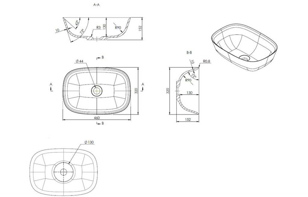 - Dimensions: Height 152 x Width 460 x Depth 320mm